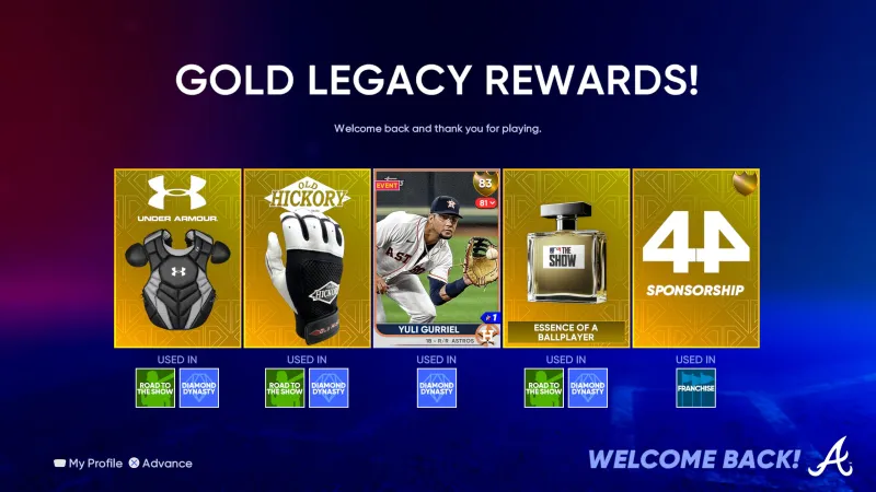 I'm beginning my impressions with the PlayStation 5 version. The first thing you'll see is a short video of Shohei Ohtani revealing more of his path into baseball. After that, for returning players, you'll receive some rewards for coming back for another season. Here's what I received: