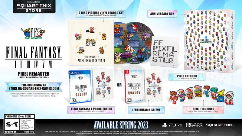 More specifically, these pixel remasters will hit PlayStation 4 and Switch sometime in the spring of 2023. Each of these games can be purchased individually or together as a bundle, and a limited physical edition will also be available on the same day. Here's a look at what to expect in the Final Fantasy I-VI Pixel Remaster: FF 35th Anniversary Edition: