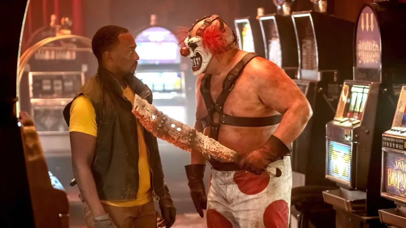 “This is gonna be fun!” exclaims Sweet Tooth as he lobs his machete towards Anthony Mackie’s John Doe, who narrowly dodges the weapon as it careens into a casino slot machine.