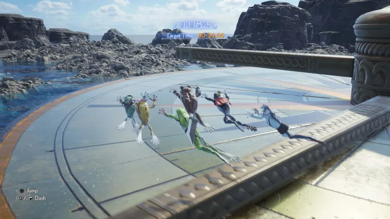 Transforming into a frog and competing in what boils down to a Fall Guys minigame isn't what Cloud likely thought he was getting into when they left Midgar, but as we've seen, strange things can happen when a lot of Mako is involved. With rotating pillars trying to knock you off the platform, your job is simple: survive. Time your jumps just right and avoid getting thrown off the platform, and you win. It's not bad in any way – in fact, it's quite fun – but its simple gameplay causes it to fall just short of the other minigames within Final Fantasy VII Rebirth.