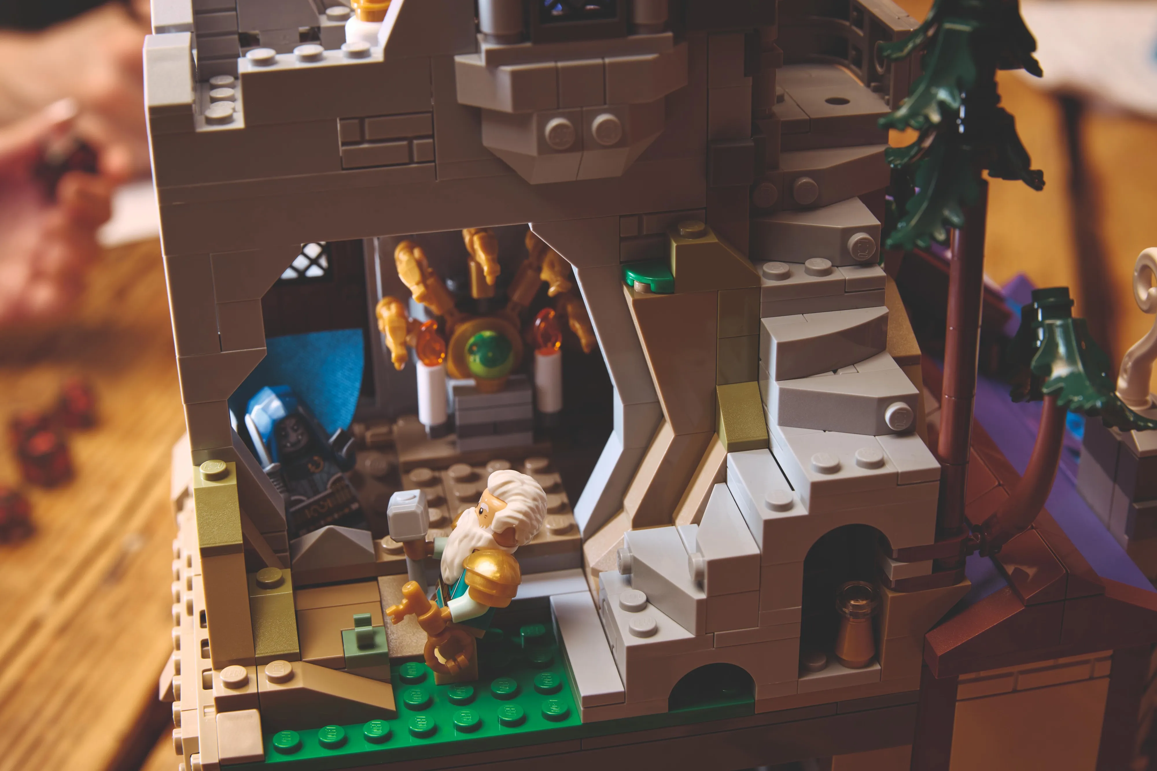 Produced through the popular LEGO Ideas platform, where fans are able to submit their own build concepts that are then refined and produced as official sets, the final set includes a full dungeon and tower, a tavern, and six minifigures (including an Orc Rogue, Gnome Fighter, Elf Wizard, and Dwarf Cleric). Builders also get several iconic D&D monsters, including an owlbear, beholder, displacer beast, and, of course, the red dragon Cinderhowl, who acts as the centerpiece of the set.