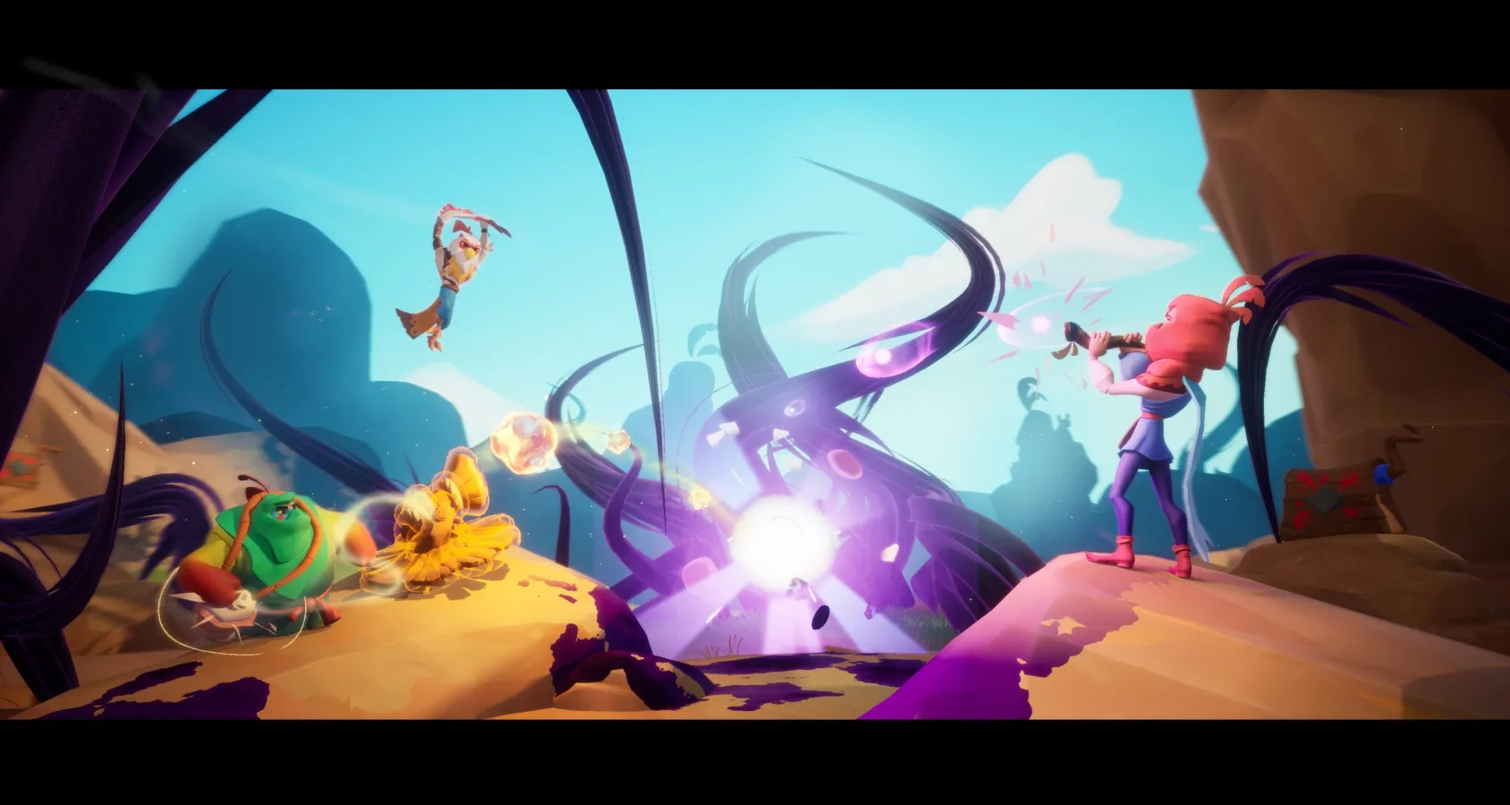 In Majjam, interactions occur through music, which serves as the life force for its whimsical world. When a dark corruption called Kodé infects everything with its silence, players must combine their musical talents and instruments to fend it off, also known as Jamming. Creating melodies is not only used in combat but also to solve puzzles and explore and unlock new parts of the environment. The Jam ability of each of Majjam’s distinct character types, such as woodwind or percussion players, is bolstered by unlockable musical abilities, which each have a unique power.