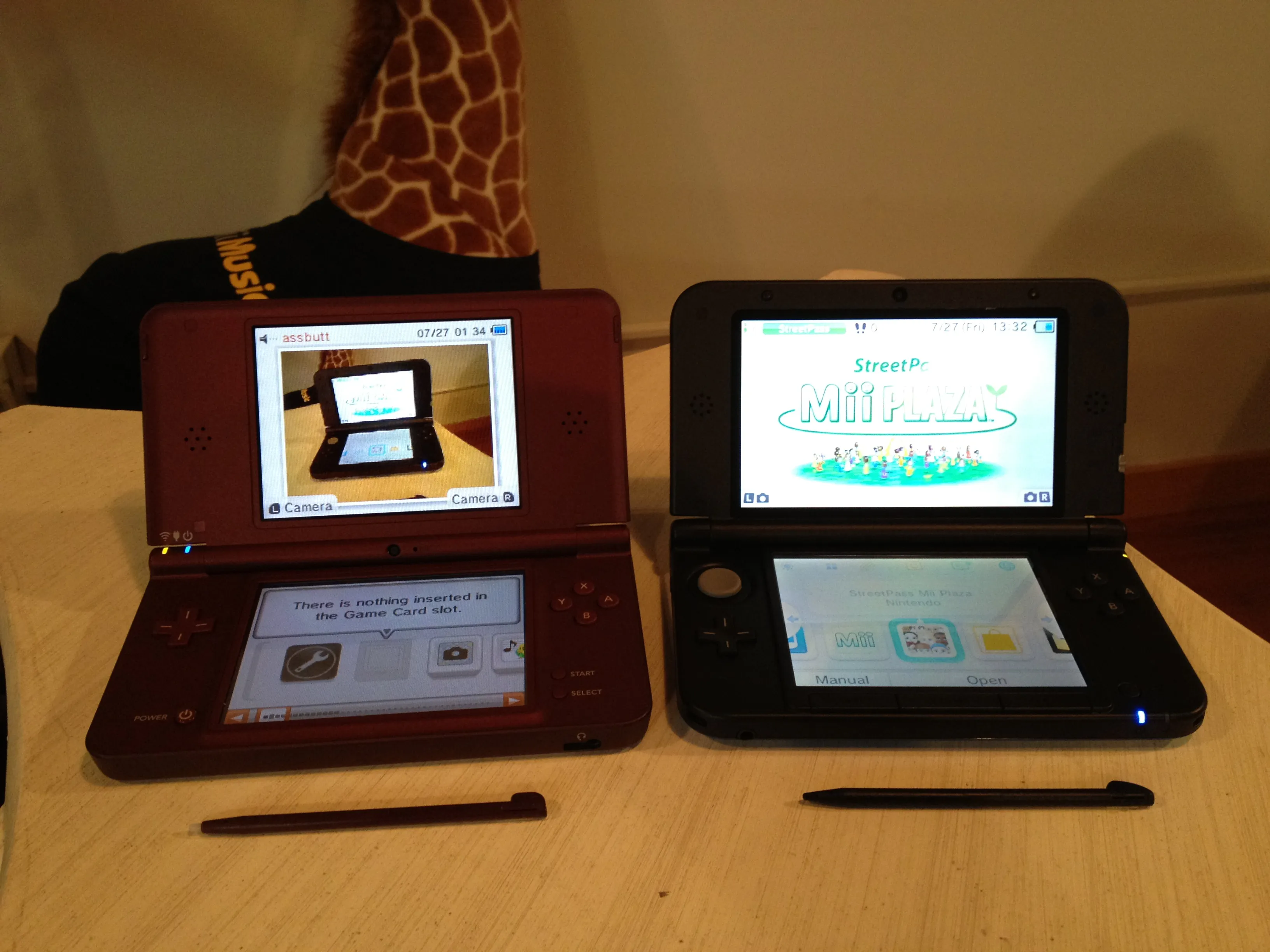 This will give you a better idea of the screen size compared to its competing systems. I used the DSi XL to take a picture of the 3DS XL just to create confusion. Also, please ignore the giraffe; he's a jerk.