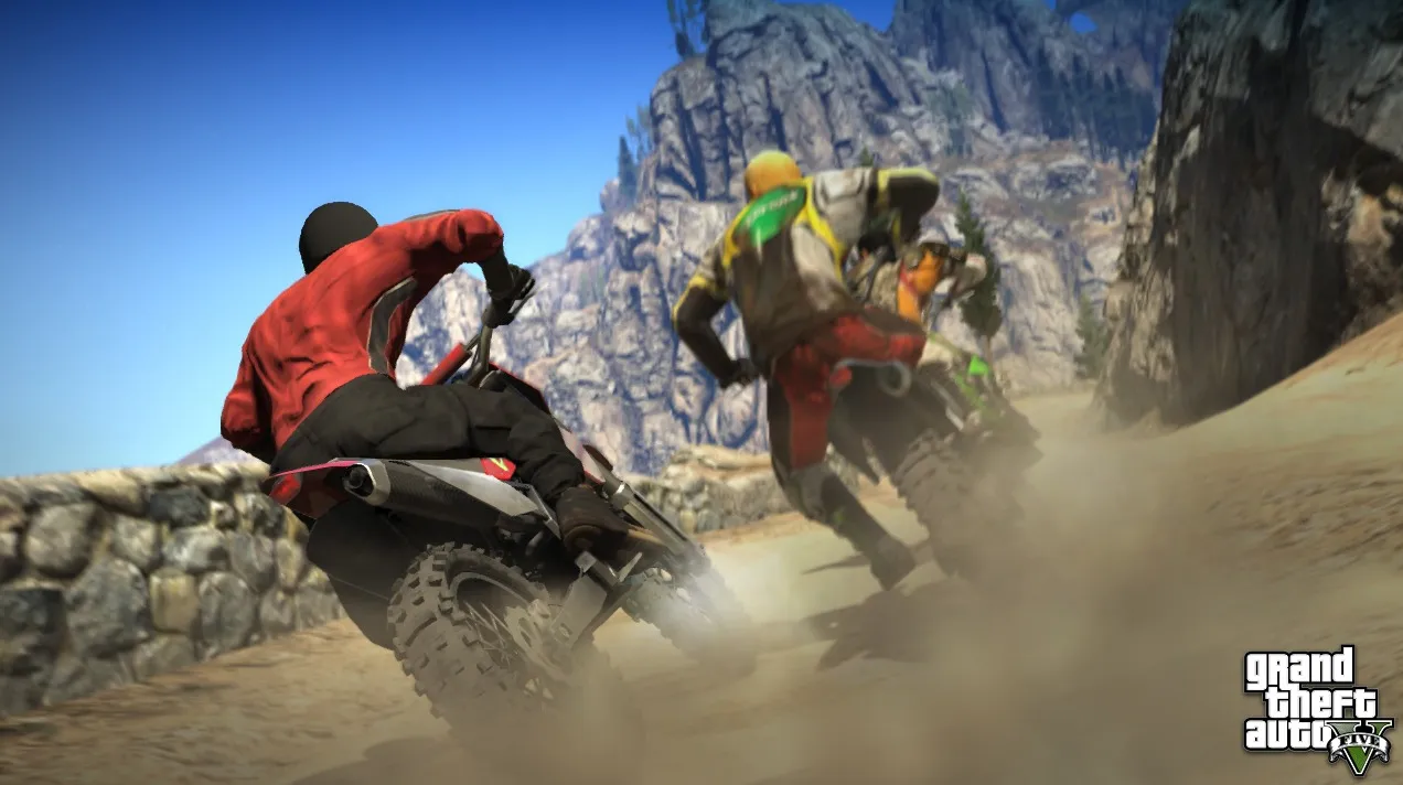 Dirtbikes have been around since motorcycles were introduced in Grand Theft Auto: Vice City. This looks like a legitimate race, so I think it’s safe to assume that you can take part in some dirtbike racing. Maybe you can bet on races, or race them yourself. The bikers are also wearing highly appropriate gear. Changing clothes would not be a Grand Theft Auto epiphany, but changing your outfit to suit your activity might be. It’s possible that wearing the correct gear might make you a better biker. Maybe it will be possible to sustain fatal, or nearly fatal injuries by dirtbike racing in nothing more than high-heels and underpants. Now this is starting to sound more like a wishlist, rather than analysis.