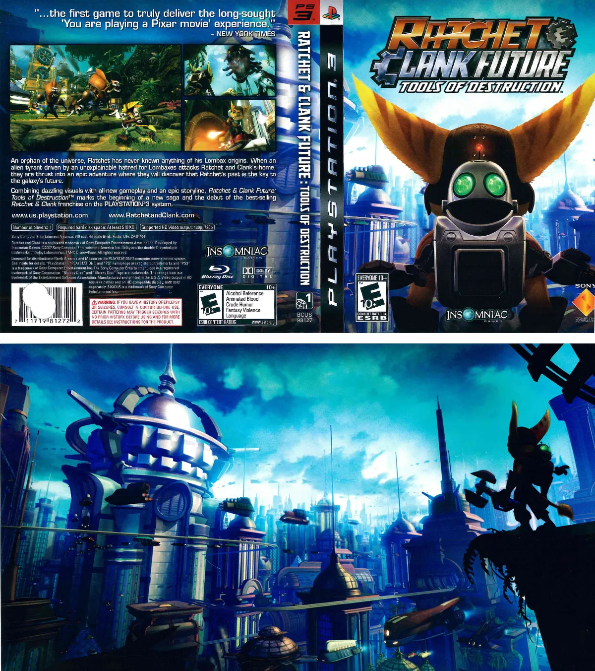Ratchet and Clank's first outing on PlayStation 3 had a weird cover. Ratchet is looking out into the city of the future, face obscured, and Clank is looking at presumably not the city, but he is still pretty amazed. The alternative cover is a gorgeous render of the city the duo is staring down, and they loom over it shrouded in darkness like Batman.
