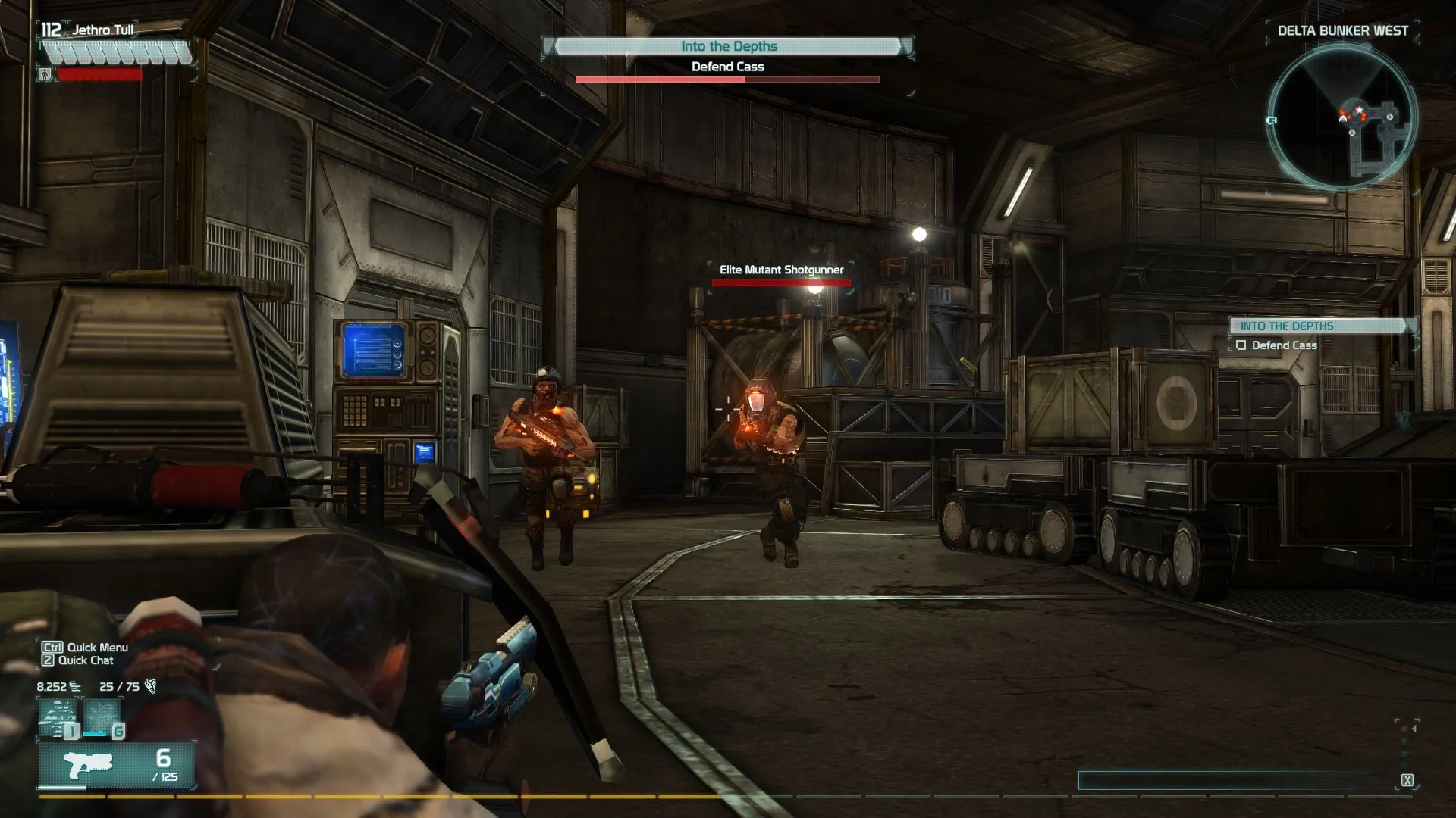 The vaunted tie-in with the SyFy cable TV show is minimal so far. A few characters make cameos with weirdly high-detail but stiffly animated faces, and most of my NPC interaction has been with an alien named Cass. I can only imagine that she serves a cosmic function as a black hole where bad dialogue is sent to not trouble the universe with its hackery any longer, because she is honestly the worst-written caricature of a freelance bounty hunter I have ever encountered – and I have shelves full of Star Wars novels. My intense personal aversion to made-up words doesn't help, with her constant usage of the awful non-word "shtako" as a replacement for the obvious vulgarity. Her reliance on the word is doubly confounding, since plenty of human soldiers have no qualms dropping f-bombs. If I weren't playing Defiance for work purposes, I'd have already mashed the skip dialogue button into pulp.