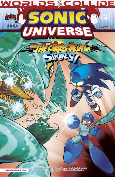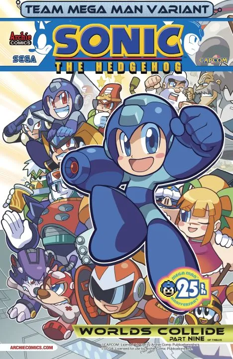 Sonic’s modern video game exploits may be polarizing, but Archie’s Sonic the Hedgehog comic series has been thriving for over 20 years. It’s the longest-running game-based comic series ever. It even spawned a successful offshoot called Sonic Universe. Capcom joined the Archie family in 2011 with a new Mega Man series that became a fast favorite of new and lifelong Blue Bomber fans. Now Archie is making history by crossing the streams of these legendary video game franchises. I chatted with Archie Comics writer Ian Flynn and executive director of editorial Paul Kaminski about the exciting collaboration.