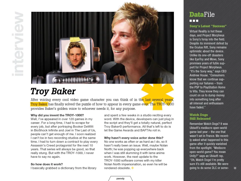 We have a yearly April Fools tradition here at Game Informer: We include a multi-page parody magazine called Game Infarcer in our April issue. It's full of fake news and games, and even helmed by a fictional editor-in-chief. In the past, it's been exclusive to our magazine, but this year, we're posting the whole feature for our online community to enjoy.