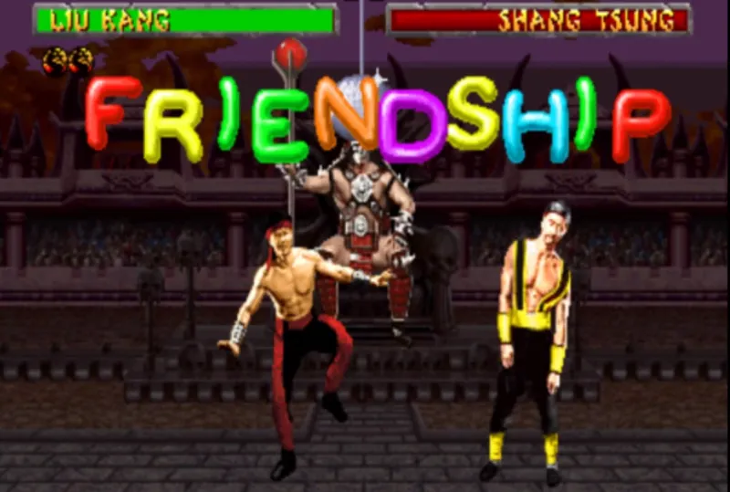 In response to the controversy surrounding the fatalities in the first Mortal Kombat, Midway gave players the ability to perform acts of kindness and humorous movements instead of the normal killing blow in Mortal Kombat II. For instance, Kung Lao pulls a bunny out of his hat, Shang Tsung presents a rainbow, and Liu Kang dances.