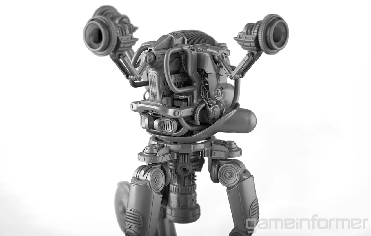 The concept for this new armor design came from discussions Pely had with director Todd Howard and lead designer and writer Emil Pagliarulo. Much like people discussing movies with friends, these conversations were informal, often happening at lunch or as they walked together throughout the office. No one on the team can pinpoint the exact dates when these talks occurred, but Howard recalls they started near the end of Fallout 3.