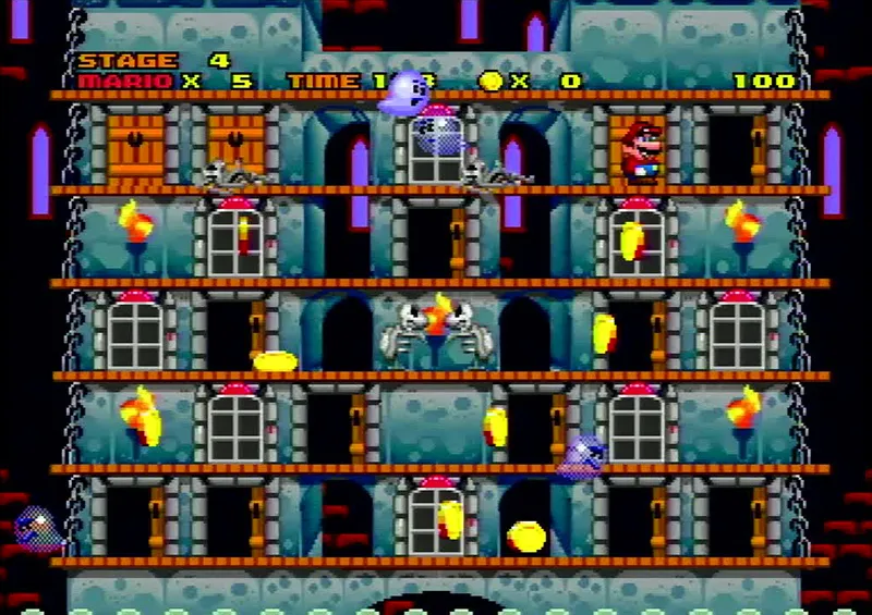 Hotel Mario is different than traditional Mario games predominantly thanks to its strange, voiced, animated cutscenes. You still view Mario from a 2D perspective, but he doesn’t jump his way through a traditional Mario level. Instead, it takes place on a single screen with a handful of platforms with doors on them. The goal of the game is to avoid the goombas and close all the doors. “They loved Hotel Mario – that was the first one that got the greenlight.” Radosh says. “Hotel Mario was my design, and it was a game that kills me; I still can’t win at my own game.”