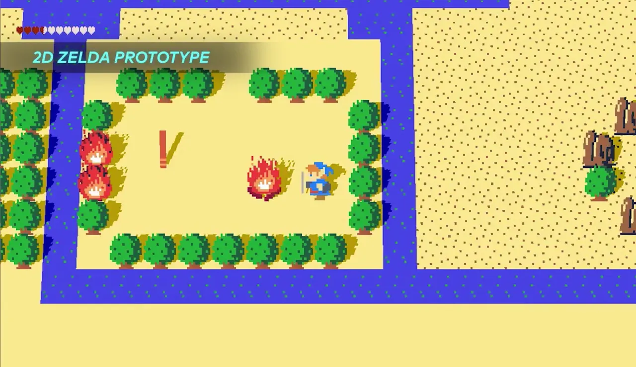 The video also offers a better look at Nintendo's internal 2D Zelda engine the team used to conceptualize concepts.