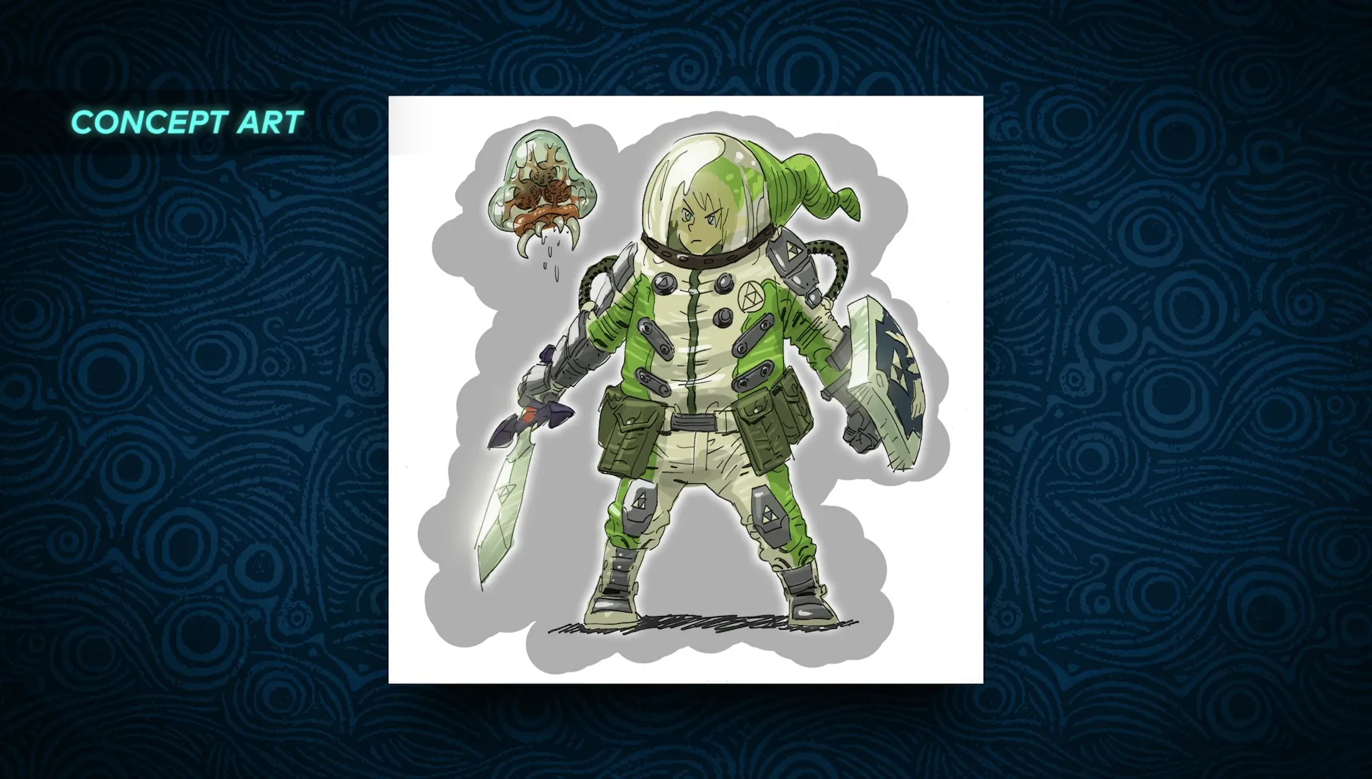 Link and Ganon's designs were pretty straightforward, though some early concept ideas for Link show an older soldier missing an arm who can apparently change his arm to different weapons, like a cannon for shooting bombs.