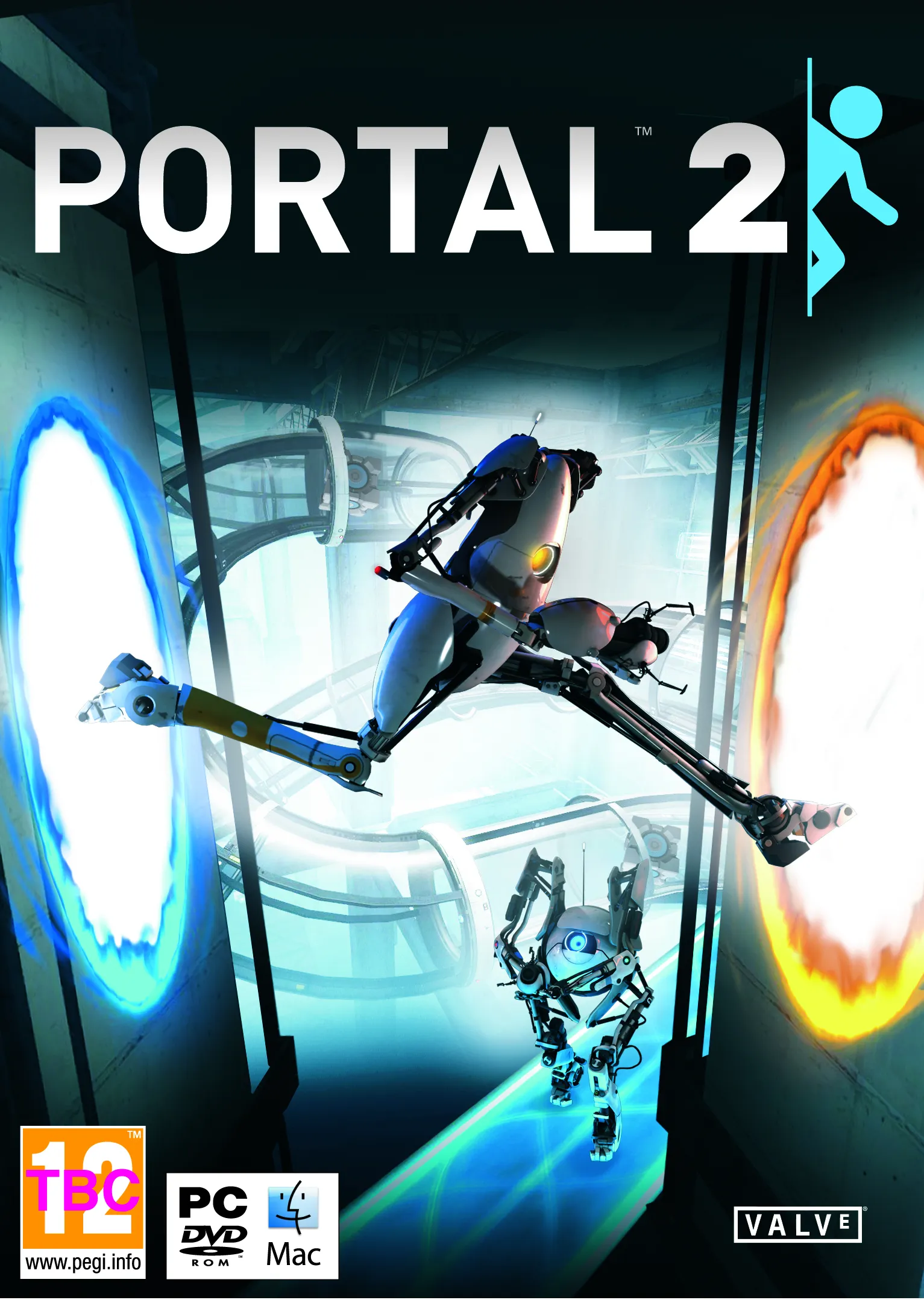 Original Story: The franchise’s standalone debut means that some tangible Portal cover art is in order, not just a digital placeholder. Valve and EA released a first look at the PAL box art for the much anticipated Portal 2, showcasing interactions between the strangely adorable co-op bots. In the background we can see weighted storage cubes being whisked around the Aperture Science facilities, waiting patiently to be of service.