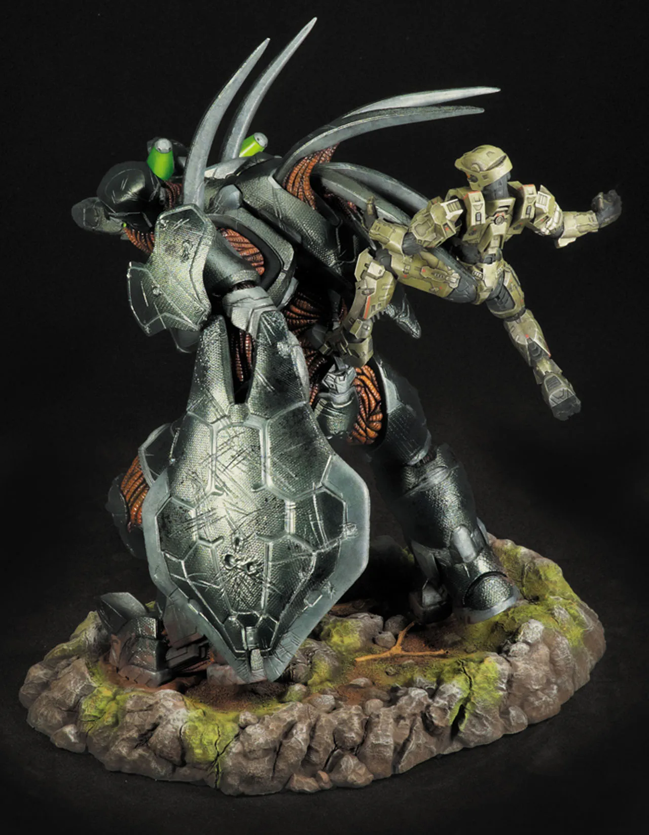 "This highly detailed, hand-painted, cold-cast resin statue depicts the series’ climactic scene, when the Master Chief - out of ammo and out of options - single-handedly faces the unstoppable rampage of an invading Covenant Hunter to save the lives of UNSC Cadets," the company says.