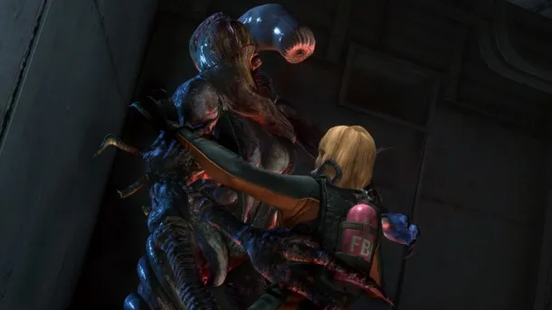 Rachel, a character introduced in the handheld title, will join series favorite Hunk as a new character in Raid Mode. Not to be outdone by the heroes, two new enemies will make their way into the console update. The only one revealed so far for Raid Mode is the Wall Blister pictured below with Jill.