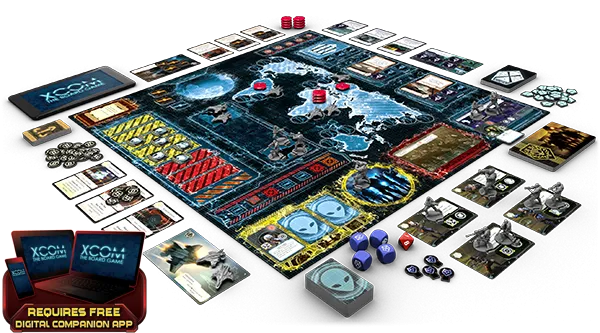 In addition to the board, cards, and pieces representing UFOs, Interceptors, and XCOM troops, the game is managed in part on a tablet (or via an online tool). The free app is responsible for executing the alien invasion and responding to your actions. The idea is to create an feeling similar to the critically lauded XCOM: Enemy Unknown without exactly duplicating it.