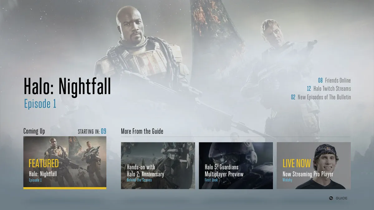 Other content outside of Nightfall includes the previously released Forward Unto Dawn, and animated Halo short Headhunters. You will also see large collection of nonfiction content including e-sports coverage, Twitch live streaming channels, trivia sections, documentaries as well as a number of other shows created internally as well as by third parties all related to Halo.