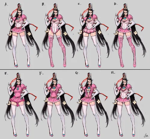 Platinum Games has released a collection of concept art images detailing the process of creating Bayonetta's assorted Nintendo costumes.
