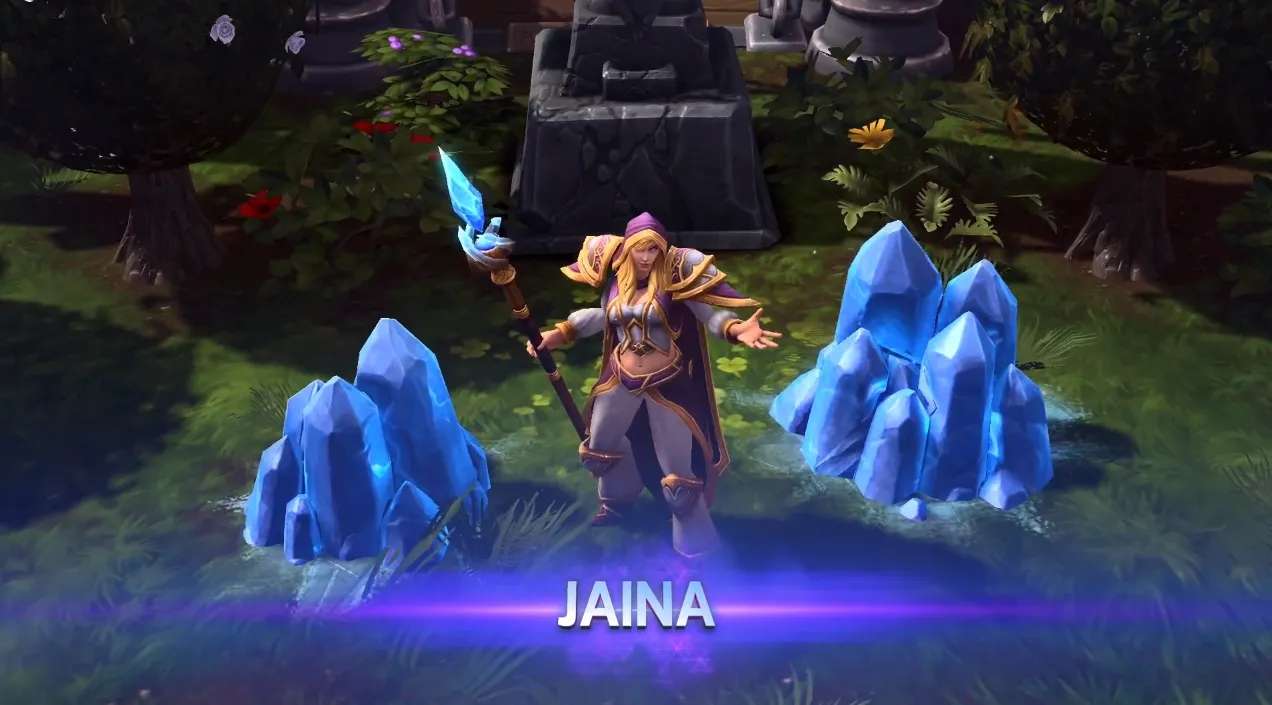 Jaina is an archetypal glass-cannon style mage, able to push out immense burst damage by combining her cold spells. With a limited mana pool and low defenses, Jaina will have to pick her moments, but is able to absolutely decimate an opposing hero by using chilling spells in sequence.
