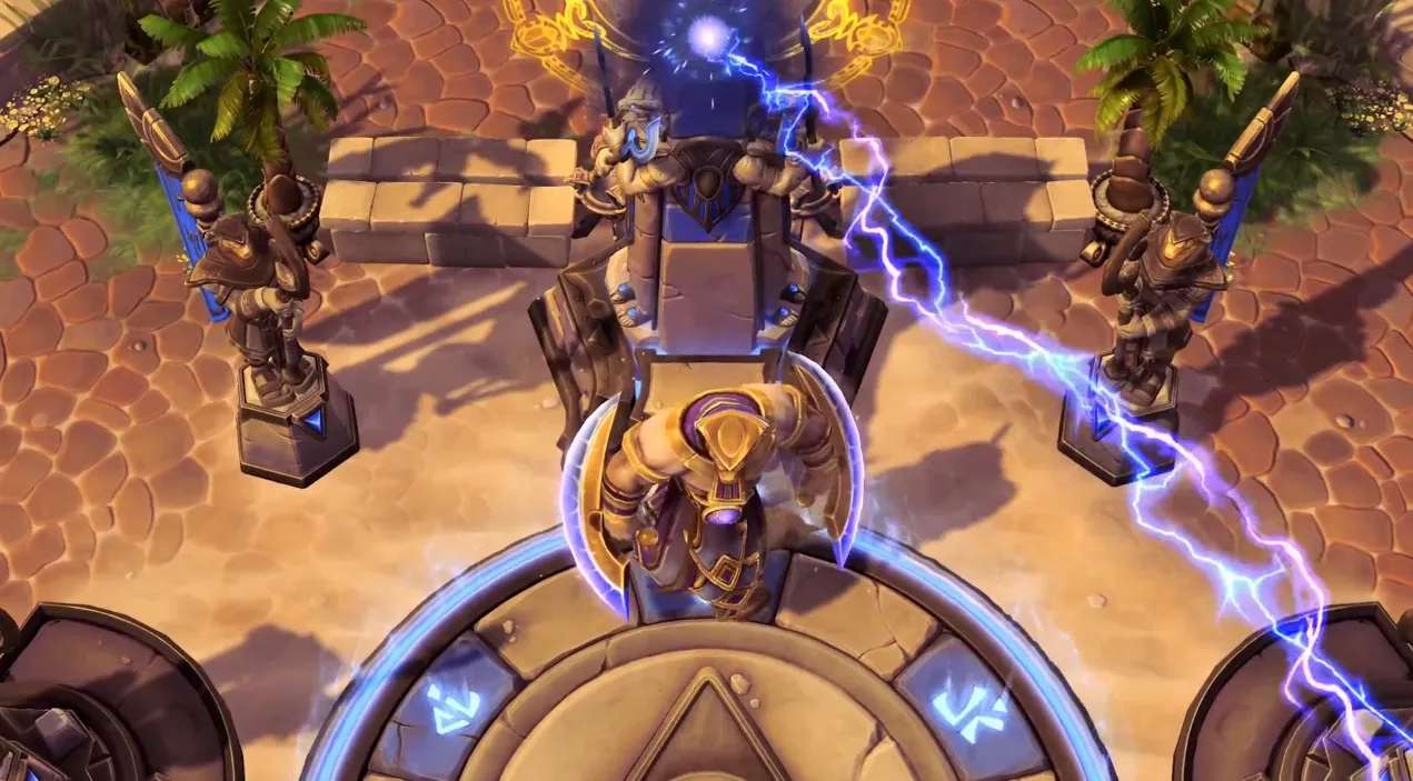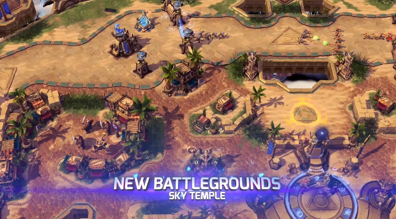 Both new maps are Egyptian themed. The Sky Temple encourages players to leave the lanes to gain control of Obelisks around the map that will rain down destruction upon the enemy base when controlled. Control won’t be easy – monsters will spawn to defend the Obelisk, and this also gives incentive for the other team to jump into the fray while you’re beating back the NPC creatures.
