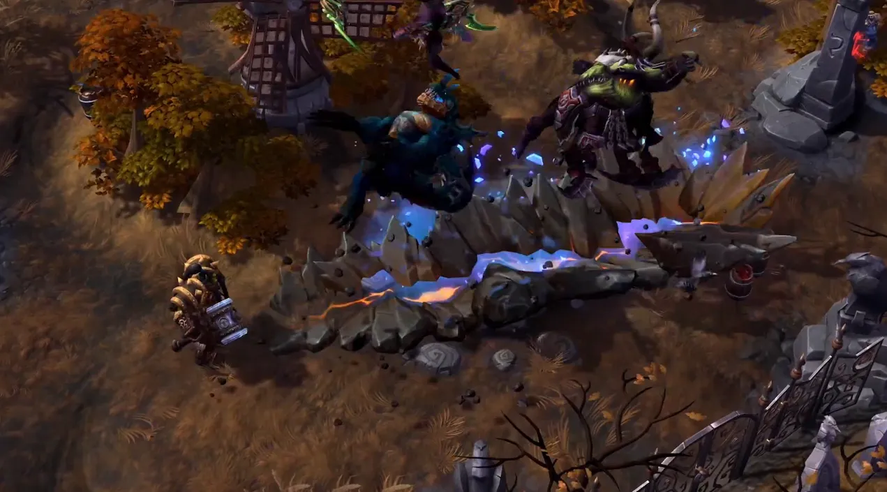 Thrall is a melee brawler that uses a windfury empowered Doomhammer to crush opponents at close range, but also has the ability to dish out damage at range with chain lightning, fire wolves, and a massive earthquake ultimate.