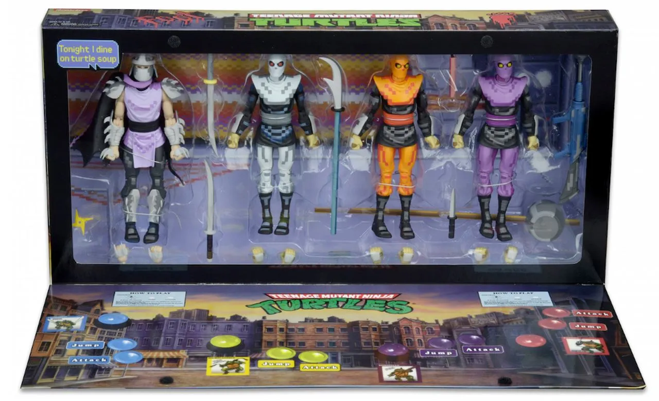 In honor of Turtle Day, NECA Toys has announced an exclusive line of Teenage Mutant Ninja Turtle action figures based on the 1989 arcade game. Exclusive to the San Diego Comic-Con happening in July, NECA will be releasing two four-figure box sets of the Ninja Turtles and Foot Clan.
