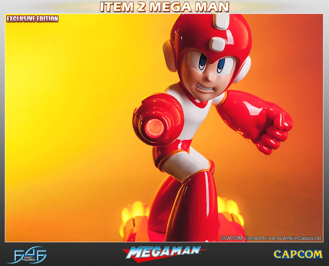 In both editions, Mega Man wills stand 13 inches tall, wearing red and white armor, and riding his hoverboard named "Item 2." The difference between the editions comes in the form of LED lights located in various positions on the exclusive edition. The regular will cost $229.99 and the exclusive $269.99. Check out a preview in the gallery below.