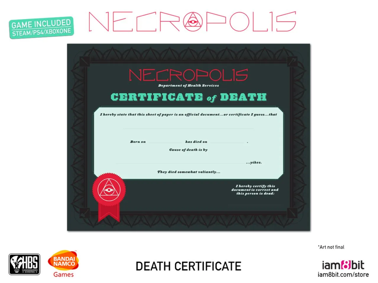 iam8bit has announced a collaboration with Harebrained Schemes and Bandai Namco to release a physical collector's edition for the game Necropolis. It will be available for those playing on PC, Xbox One, and PlayStation 4.
