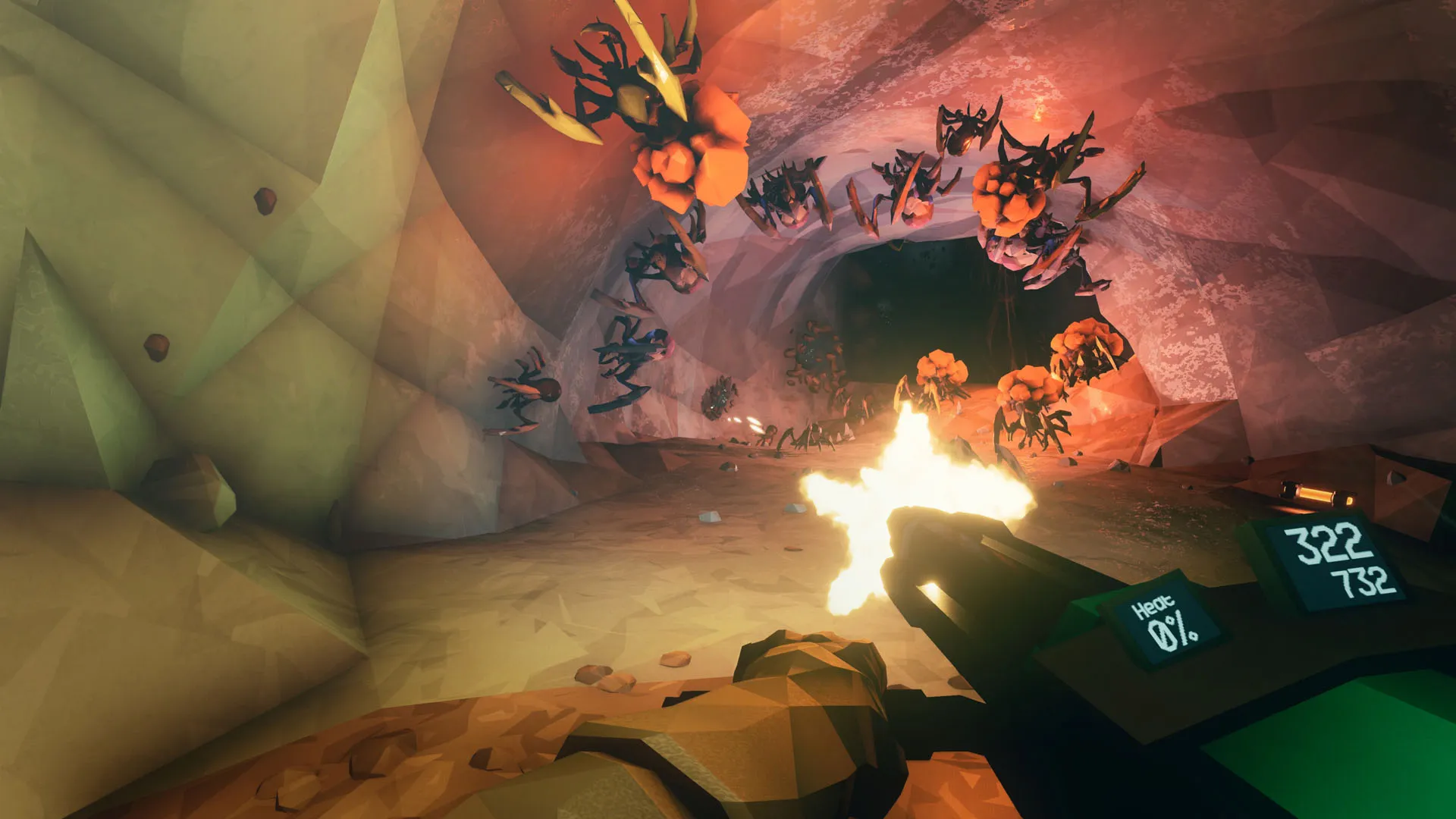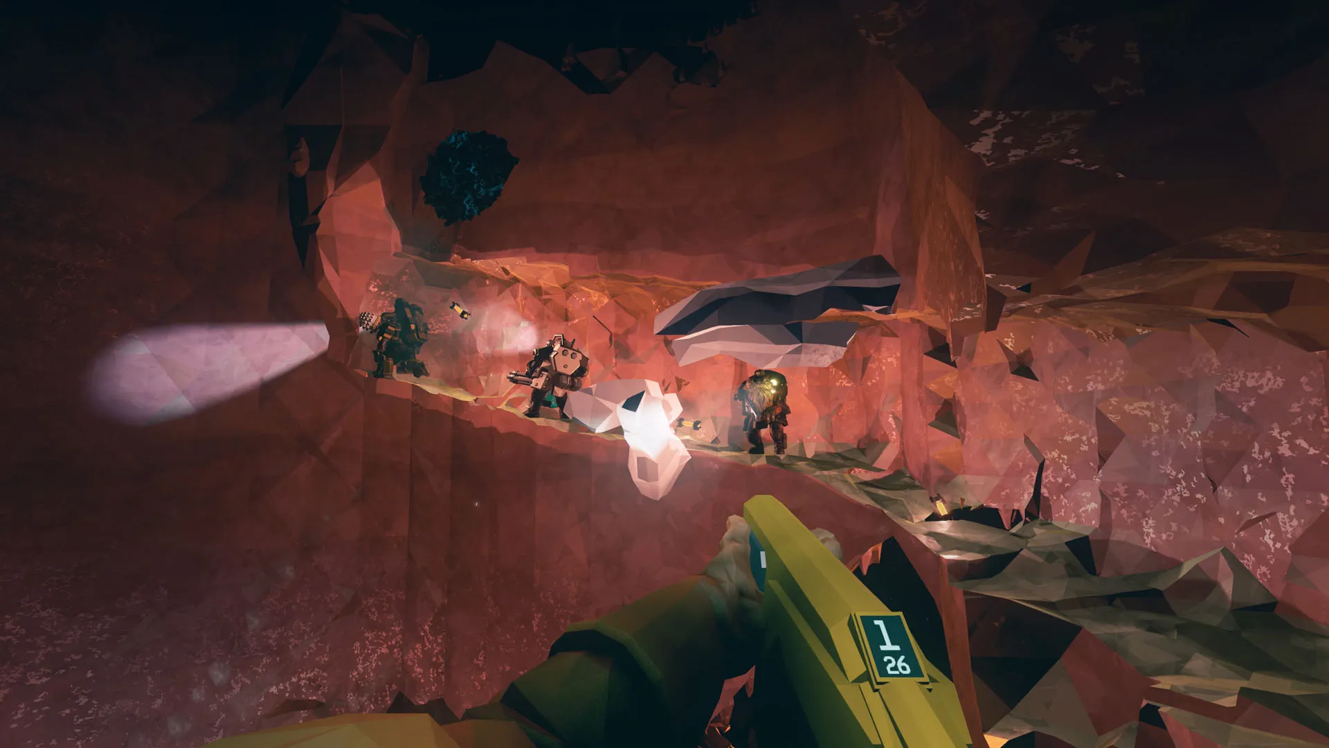 Deep Rock Galactic focuses on space mining dwarven mercenaries who tackle impossible jobs deep beneath the surface of alien surfaces. Up to four players can join up to fight and dig their way through danger. The areas you move through are procedurally generated, and filled with colorful alien creatures.