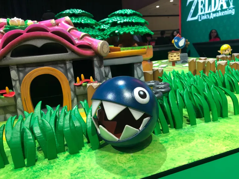 First up, the main attraction: Link's Awakening. Nintendo built large dioramas of some of the classic locations in the remake, including Mabe Village, Tornobo Shores, and the inside of Tail Cave.