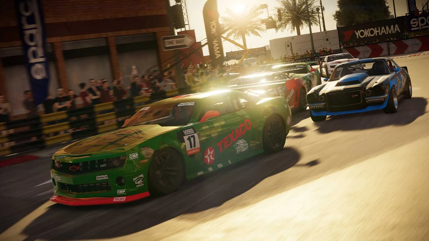 On the track (using a wheel), the muscle and touring cars felt appropriately different, and the game's late-in-the-day lighting looked great. I was also pleasantly surprised when a car ahead of me skidded out and caused all sorts of trouble.