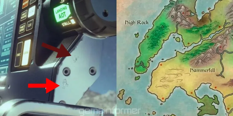 With that out of the way, let's dive into the latest fan theory. In the Starfield trailer, the release date of November 11, 2022, can be seen as part of the events in the video. But, like most Bethesda videos, fans are convinced there is more than what meets the eye, namely when looking at a part of a map that the character in the scene points towards. It didn't take long for Reddit to be all over any sort of similarity, and it looks like the notion that part of the map is actually pointing towards Hammerfall is gaining a lot of traction in the Elder Scrolls fandom.