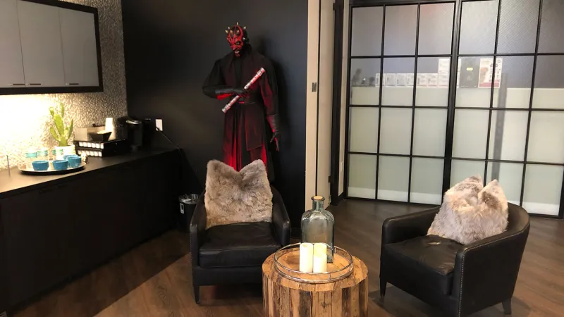 There was also a speeder bike (which was used for Star Wars Battlefront marketing) and a Darth Maul statue in the studios’ entrance.