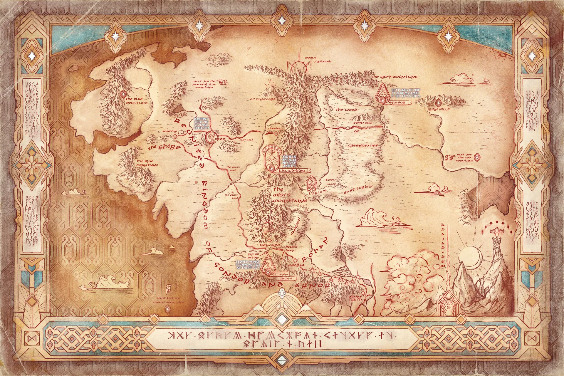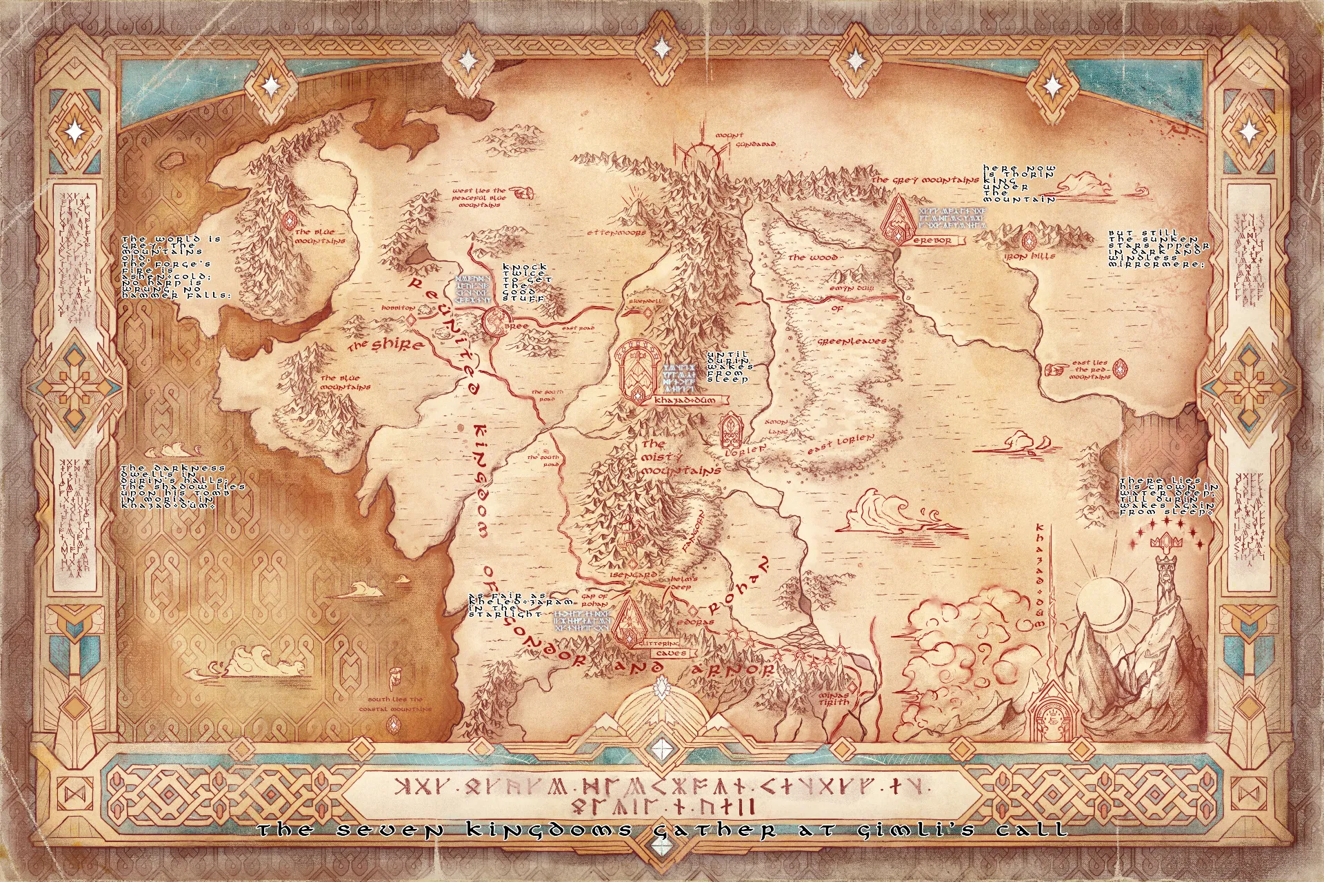 This carried over to the map. The artist that we worked with already had deep knowledge of Middle Earth, so the brief only needed to lay out our goals. We wanted the map to feel like a hand-made artifact of the world it was from, drawn by Dwarves using the tools and knowledge of the world that they had. Because of our illustrator's familiarity with the setting, the rest of the content came naturally.