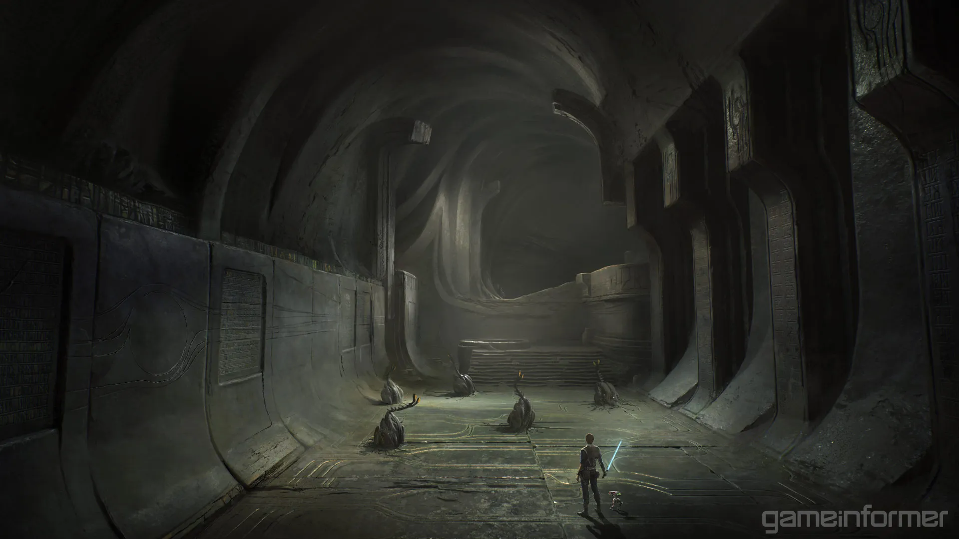 Greez willfully transports this small group of characters to any planet at any time – both to progress the story and for freeform backtracking. We don’t know how many worlds there are yet, but the concept art and clips from the trailer hint at a good number of them. Asmussen says the ratio of established Star Wars planets and new planets original to Jedi: Fallen Order is about half and half. Each world houses a hub where the ship lands. Here, the player can return to rest up, save, apply skill points, and spark conversations with characters to learn more about them, the worlds, and overall story. The ship also offers other activities Respawn doesn’t want to reveal just yet.