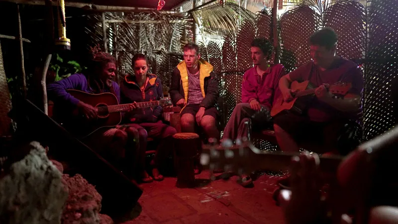 On my last night in New Caledonia, we’re back on the main island, and Awaceb is hosting a party for local talent who participated in the game. Thoane performs with his partner and another local act of talented musicians who also have music in the game. The mood is celebratory.