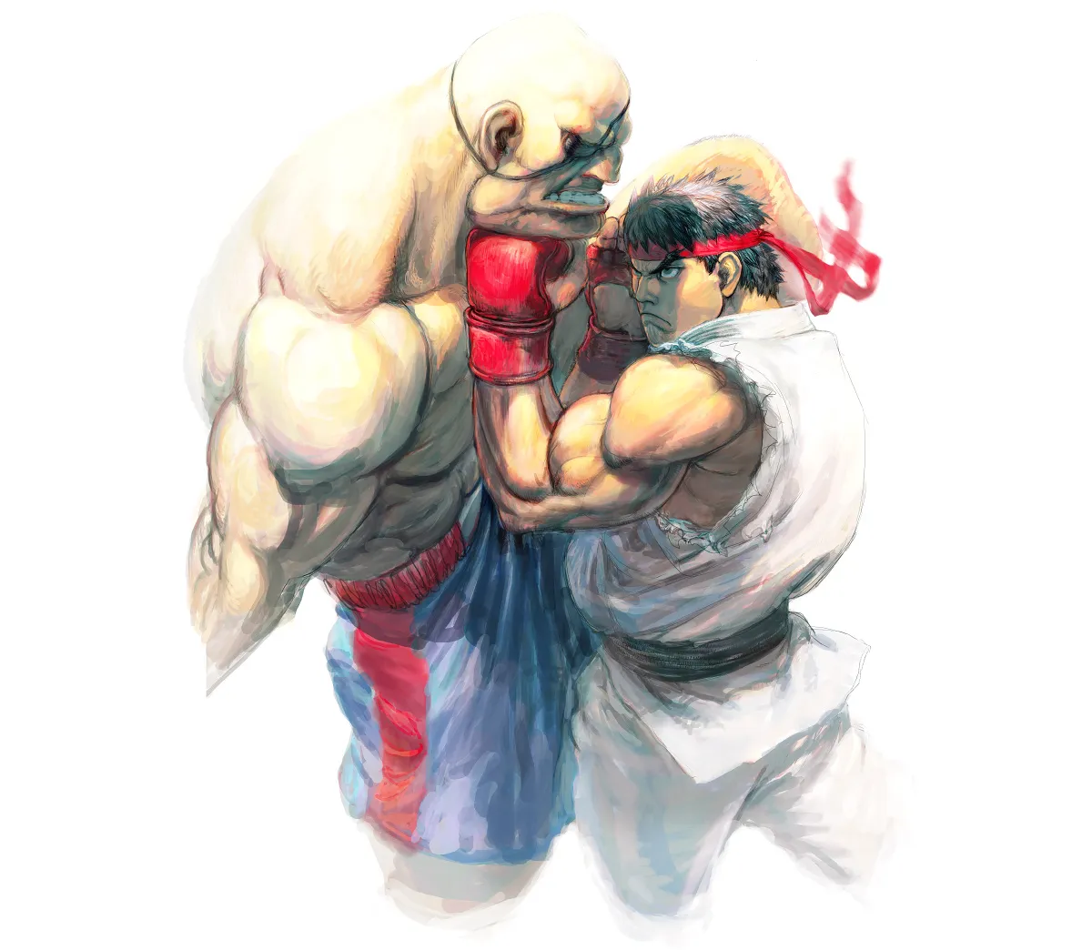 Pulling from their interests in martial arts, Matsumoto and Nishiyama immediately started brainstorming about the kinds of fighters and moves they should put in the game. While the game universe today includes several colorful characters with distinct fighting styles, initially players could only control Ryu, representing Japan, and Ken, representing the United States. Ryu and Ken handled identically to one another, possessing the same attributes, moves, and techniques. This allowed for completely balanced one-on-one competitive combat against another player, but more importantly, it let the team remain on budget and schedule.