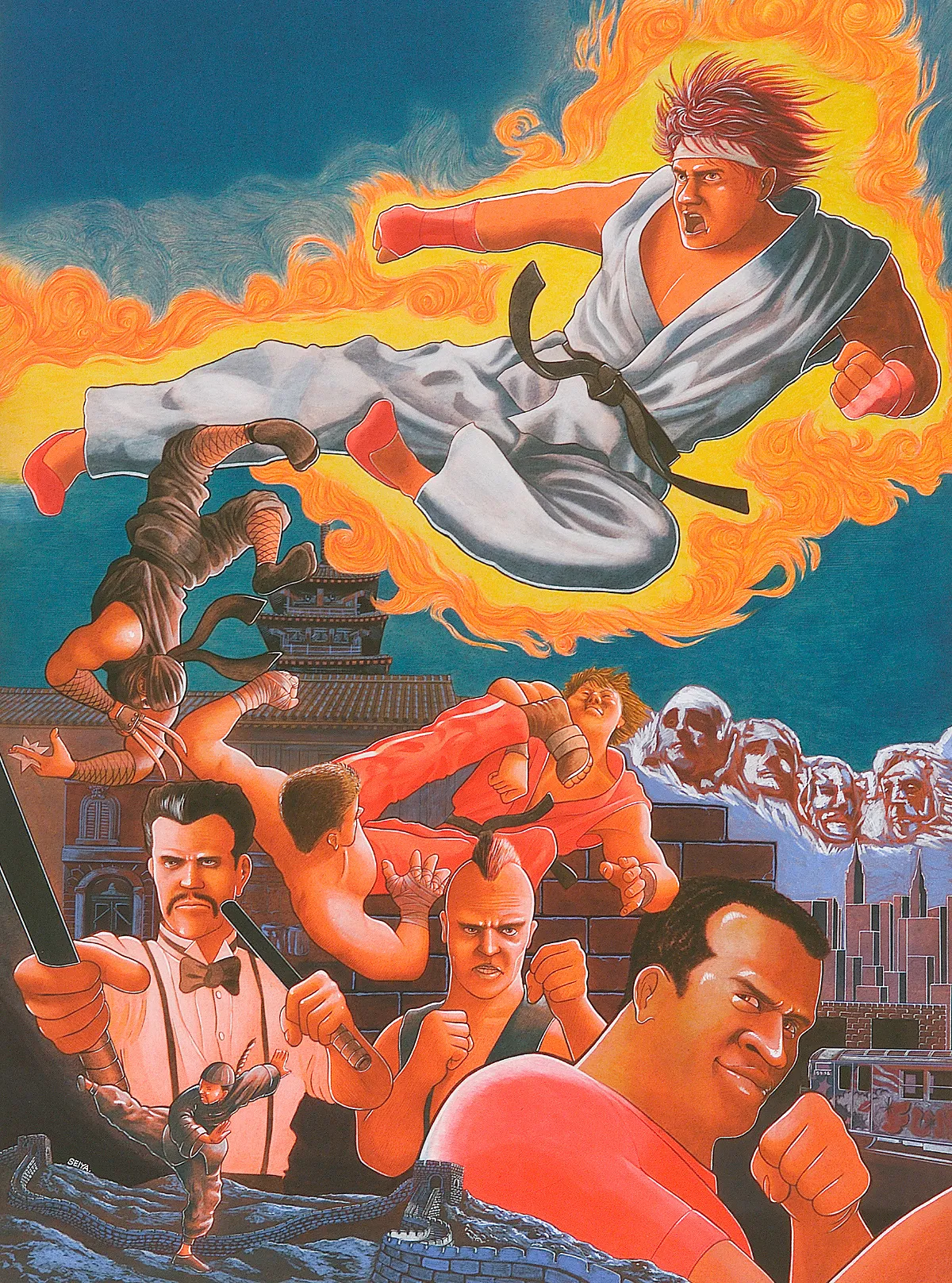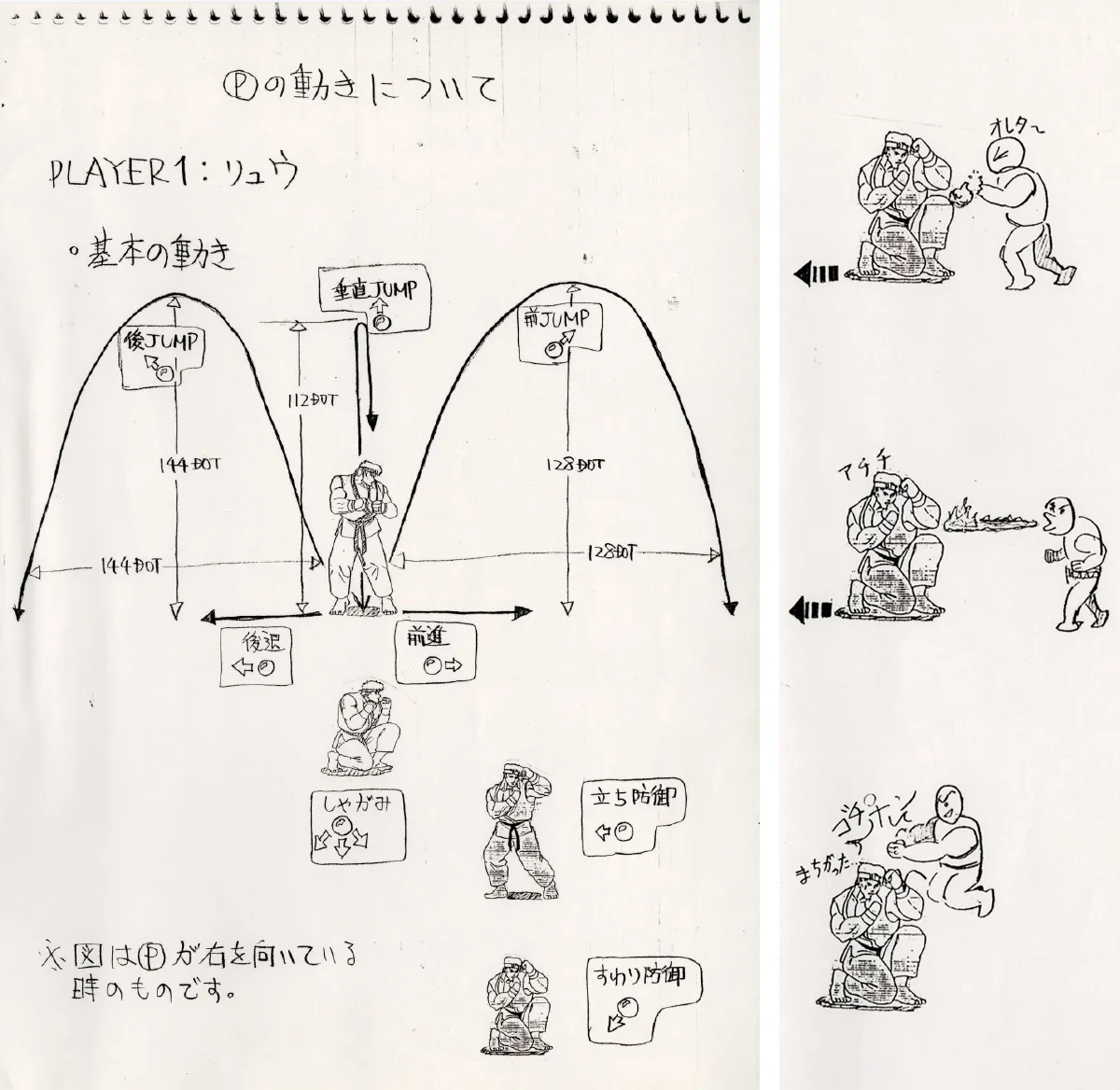 As he recalled to Polygon in 2020, Nishiyama began sketching his idea on a piece of paper. Inspired by the one-on-one boss battles in the 1984 beat ‘em up game Kung-Fu Master (which he also worked on), as well as Bruce Lee’s 1972 film, Game of Death, Nishiyama jotted down the basic concept of two characters facing off in one-on-one combat. Once he had it on paper, he showed it to producer Yoshiki Okamoto, sitting next to him in the meeting. Okamoto thought the idea looked interesting, so Nishiyama created a design document out of the concept and presented it to higher-ups, including planner Hiroshi Matsumoto. Once Capcom green-lit the project, Nishiyama and Matsumoto worked together to flesh out the idea.