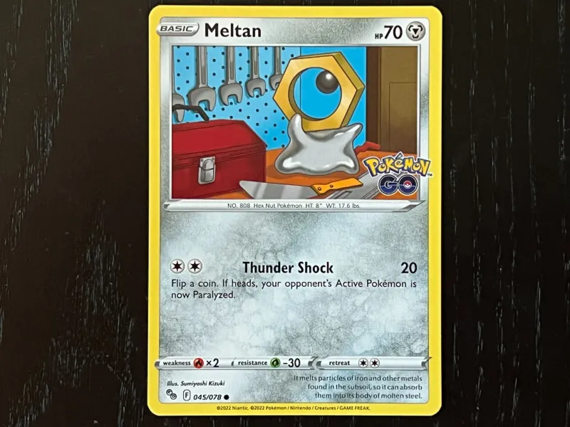 We were sent several boxes of this special expansion. As I opened the cards, I noticed the cards tend to feature more Pokémon from Gen I than other generations, which makes sense given the game's peak popularity. That said, various cards I pulled featured Pokémon like Tyranitar, Dragonite, and Blissey, who have, at one point, stood atop the in-game meta of Pokémon Go. It's nice to see those homages, alongside the most iconic Pokémon, the human characters from Pokémon Go, and items like Egg Incubators, Lure Modules, and PokéStops, which are essential parts of the mobile game. This pack also features peel-away Ditto cards, Pokémon exploring photorealistic settings, and Radiant Pokémon. And of course, there's Meltan and Melmetal, who both debuted through Pokémon Go.