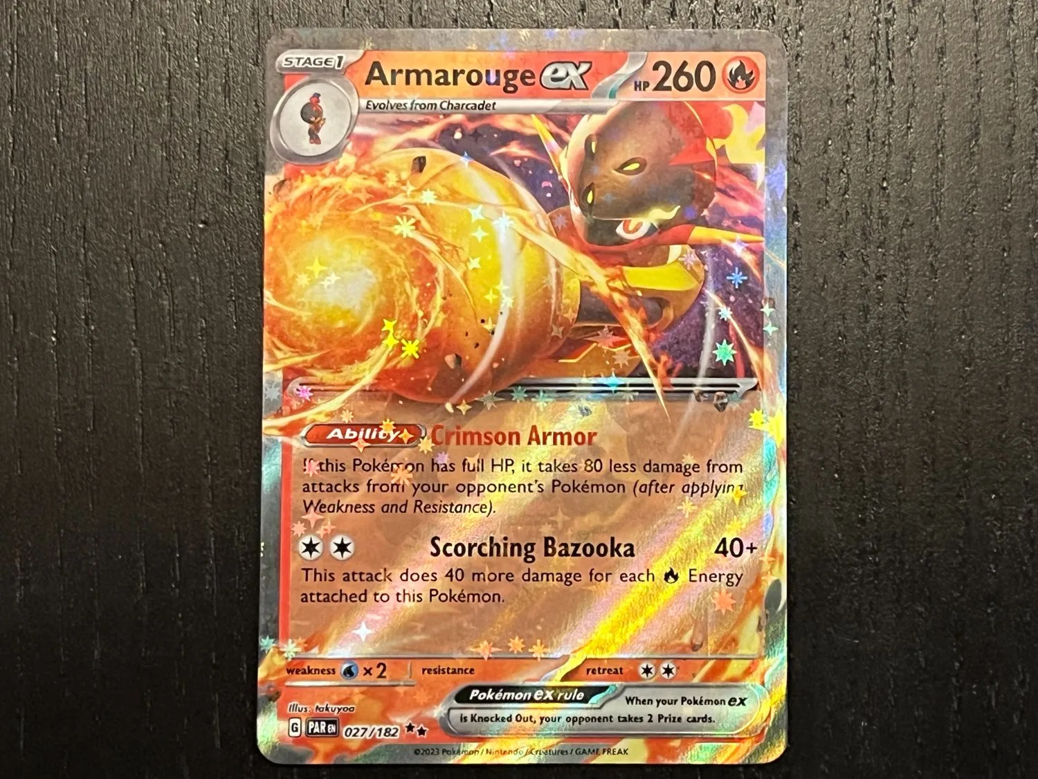 The Pokémon Company sent along a bunch of booster packs from the Paradox Rift expansion for us to open in order to see what we could pull. After the last expansion focused squarely on the original 151 Pokémon, Paradox Rift largely shines the spotlight elsewhere (though a few Kanto creatures still show up). I loved the Yveltal and Garchomp EX cards I pulled, but my favorite is probably the Armarouge EX. I also loved the Ancient and Future Pokémon, but I'm disappointed the ones I pulled weren't foils. However, the gold-etched Iron Valiant EX card more than made up for that.