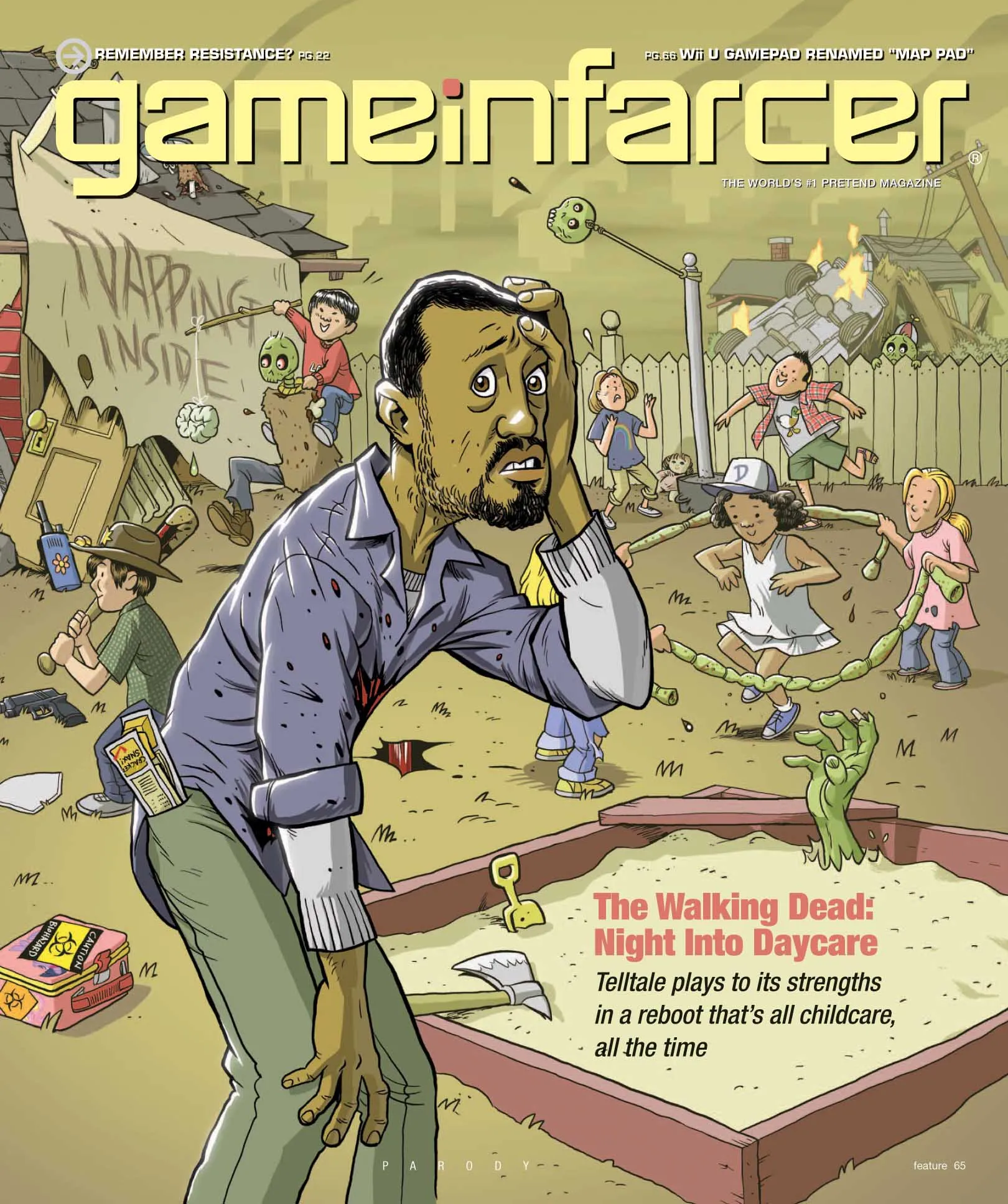 Our April Fool's Day tradition around here is Game Infarcer – a parody magazine featuring fake games, pretend news, and even a non-existent editor-in-chief. This year's edition went online today, including a wonderful illustration of Resident Evil IX by artist Zander Cannon. But if you've been reading Game Informer for a while, you know that this isn't the first time Zander has created the cover for Game Infarcer. In fact, this is the 16th consecutive year we've collaborated with him on this project.