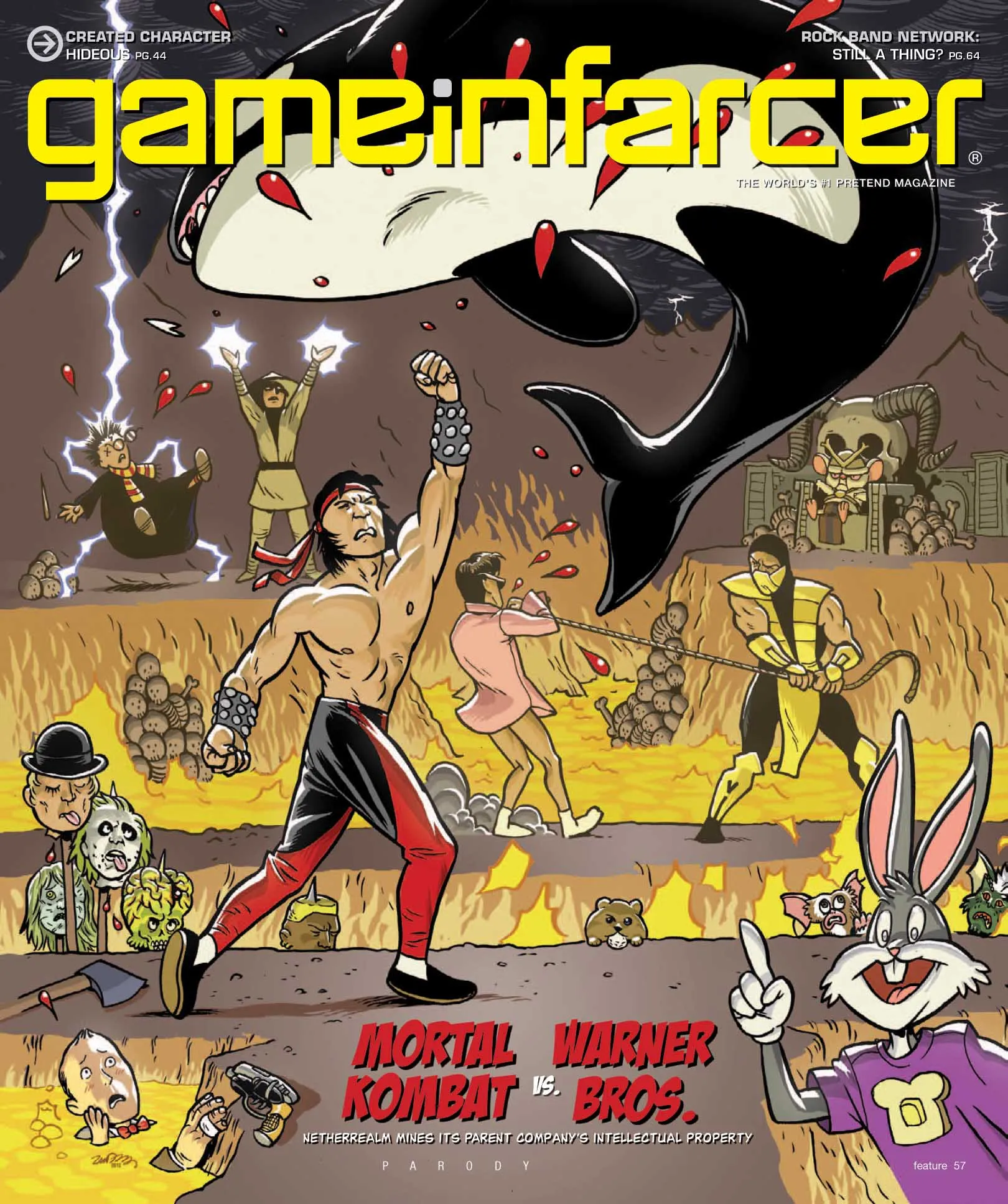 To celebrate such a long history, I got together with Zander, my colleague Ben Reeves, and former GI editor Jeff Cork to take a stroll down memory lane. The four of us worked together on the majority of these covers, so we traded stories about all 16 of them. In this retrospective, we share our recollections on all things Game Infarcer, from the origin of the core cover concepts to the technical details of creating the illustrations.