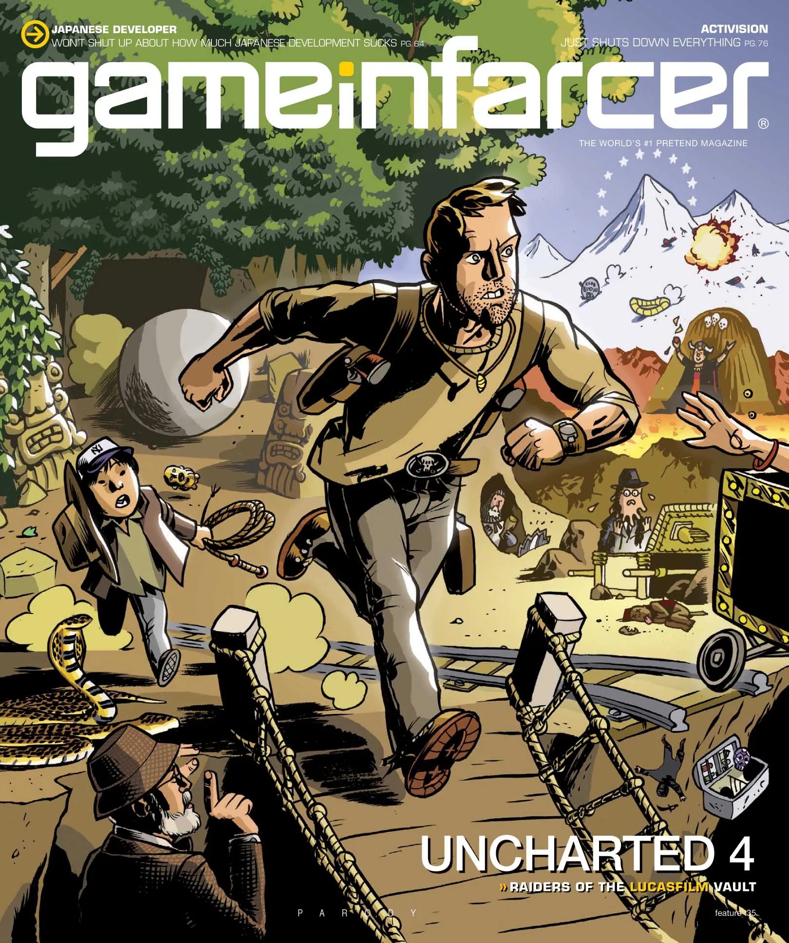 ZANDER: There are a million things in there. You have the Paramount stars, the raft, the Club Obi-Wan. There are a million Indiana Jones jokes. But there are no Uncharted jokes ... one reason being I hadn’t actually played Uncharted at this point. I didn’t have a PS3. And it’s not like I’m a caricaturist – if I had nailed what Nathan Drake looked like, maybe that would have been different.