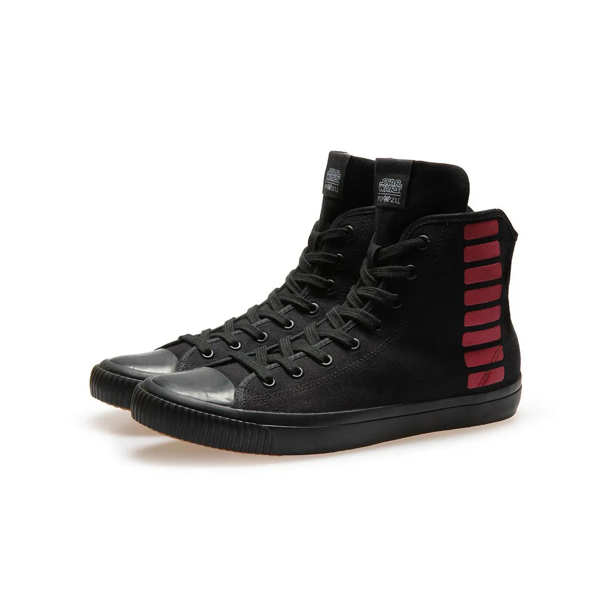 These high-top sneakers are created by Po-Zu, and are slated to ship from the shoemaker's UK warehouse in August. How much will it cost to wear two Kylo Ren masks? Po-Zu is selling them for £69.00 (which translates to rough $92).