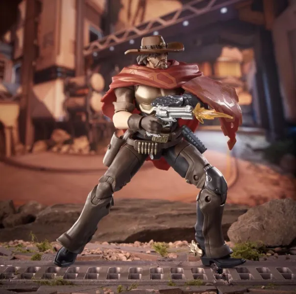 McCree, Junkrat, and Zarya are joining Hasbro's new (and popular) Overwatch Ultimates action figure line. The first of this six-inch series kicked off in a big way a couple of months ago, giving fans the chance to add Mercy, Reinhardt, Reaper, Lucio, Sombra, Pharah, Ana, and Soldier 76 to their collecting shelves. The second series, which will make its official debut at this year's San Diego Comic Con (running from July 18 to 21), introduces the heroes of note, and the series' first variation.