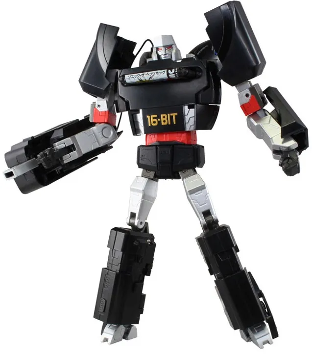 On November 7, 2014, toy manufacturer Takara Tomy dreamed up new transformations for these beloved robots. Optimus Prime adopted a light grey color (similar to Megatron's) that allowed him to transform into a PlayStation console, complete with a controller. Megatron's armor turned to the shiny black of the Sega Genesis (also known as the Mega Drive in other territories). Despite being one of the universe's greatest threats, Megatron's Genesis transformation was a colorful Sonic the Hedgehog cartridge.
