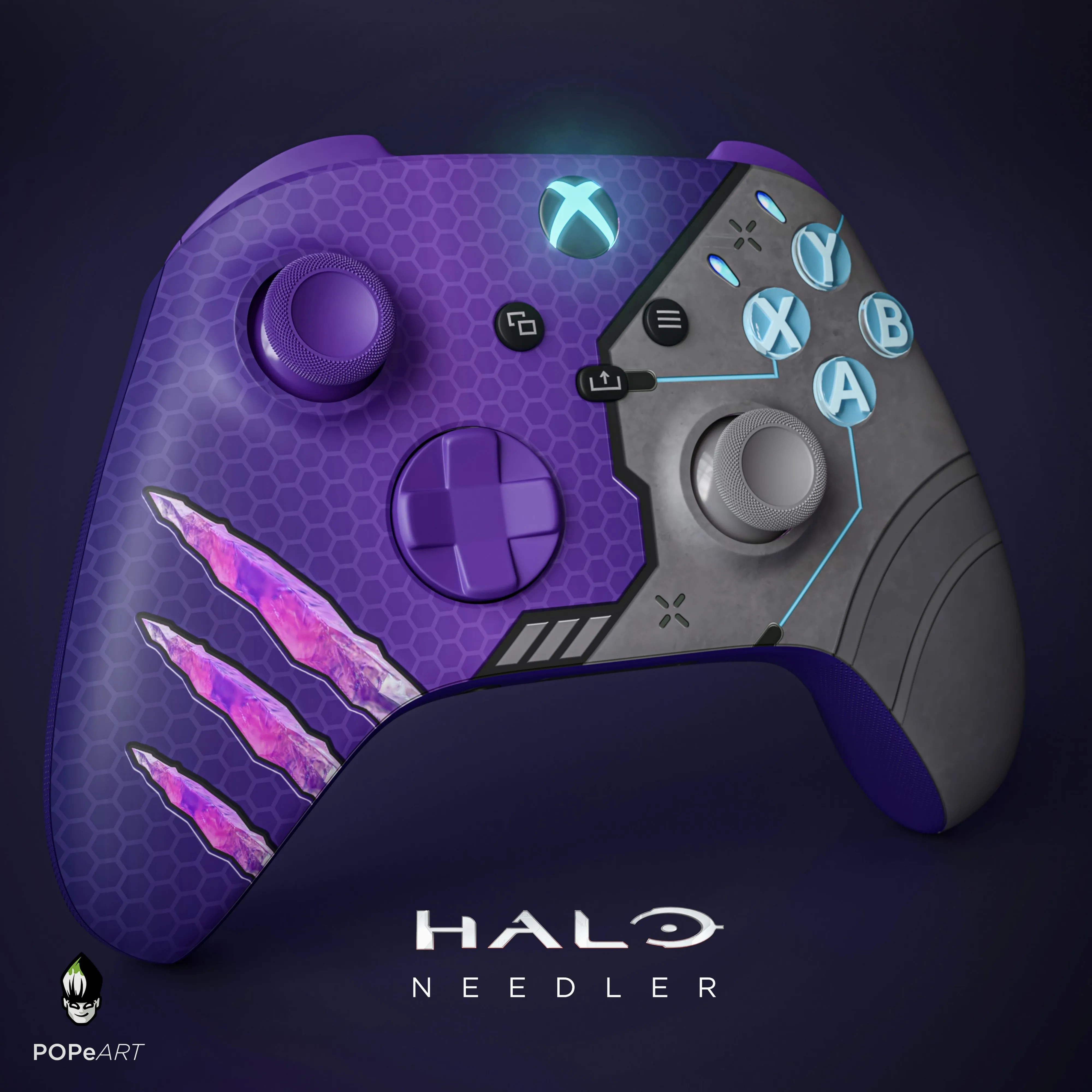 The Halo Needler controller comes by the one and only Pope Art. Pope began his creative journey by crafting expertly designed controllers and console skins modeled after some of our favorite games. It didn't take long before his talent caught the eye of many in the games industry, leading to some impressive collaborations with some of the biggest names in the business. That includes the exclusive Claptrap-themed Borderlands 3-inspired Xbox Series X console design that the artist collaborated with Gearbox on. But we're not here to talk about Borderlands; let's dive into that Halo Needler love: