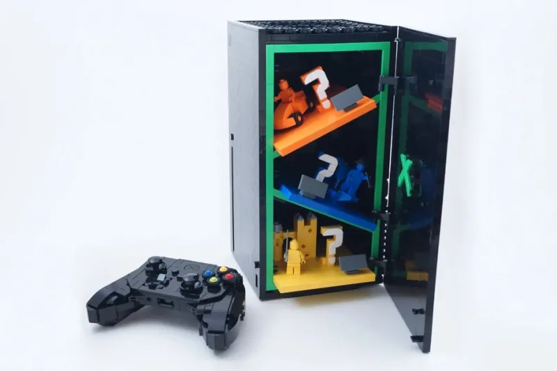 Over on the Xbox Series X side of things, BrickinNick’s description reads much in the same: it’s a 1:1 scale build, it opens up to reveal three hidden video game scenes, and more. The controllers on both even have working battery compartments with Lego batteries!
