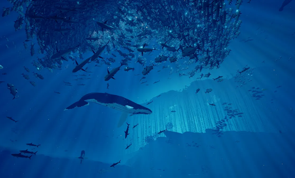 As I uncovered buried drones that opened new areas, and discovered glyphs depicting the concerns of a previous civilization, I started to wonder if there were other gameplay surprises in store. But when the simple switches to open gates didn't hold my attention, invariably something would happen – like joining a pod of blue whales diving into parts unknown – that would re-capture my attention and fire my imagination. At moments like this I ceased to care about gameplay. In this way, Giant Squid attempts a delicate equilibrium in Abzû; adding additional gameplay elements like more controls or brain-twisting puzzles, or bowing to gameification, would evaporate what it is.